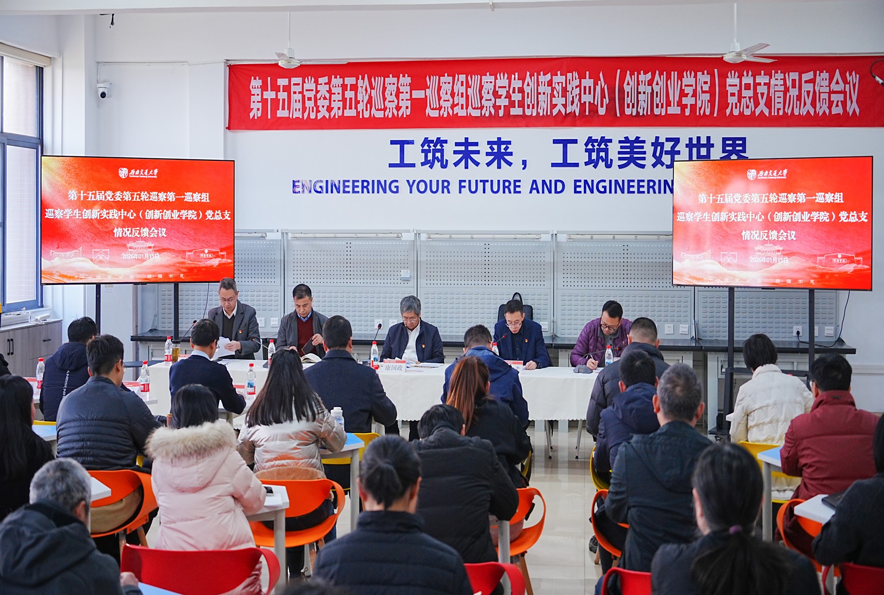 根据学校党委统一部署,1月15日,第十五届党委第五轮巡察第一巡察组向学生创新实践中心(创新创业学院)党总支反馈了巡察情况。校党委常委、副校长康国政出席会议并讲话。第一巡察组组长朱志武反馈了巡察情况。中心(学院)党总支书记张江泉作表态发言。主任(院长)贺剑主持会议。