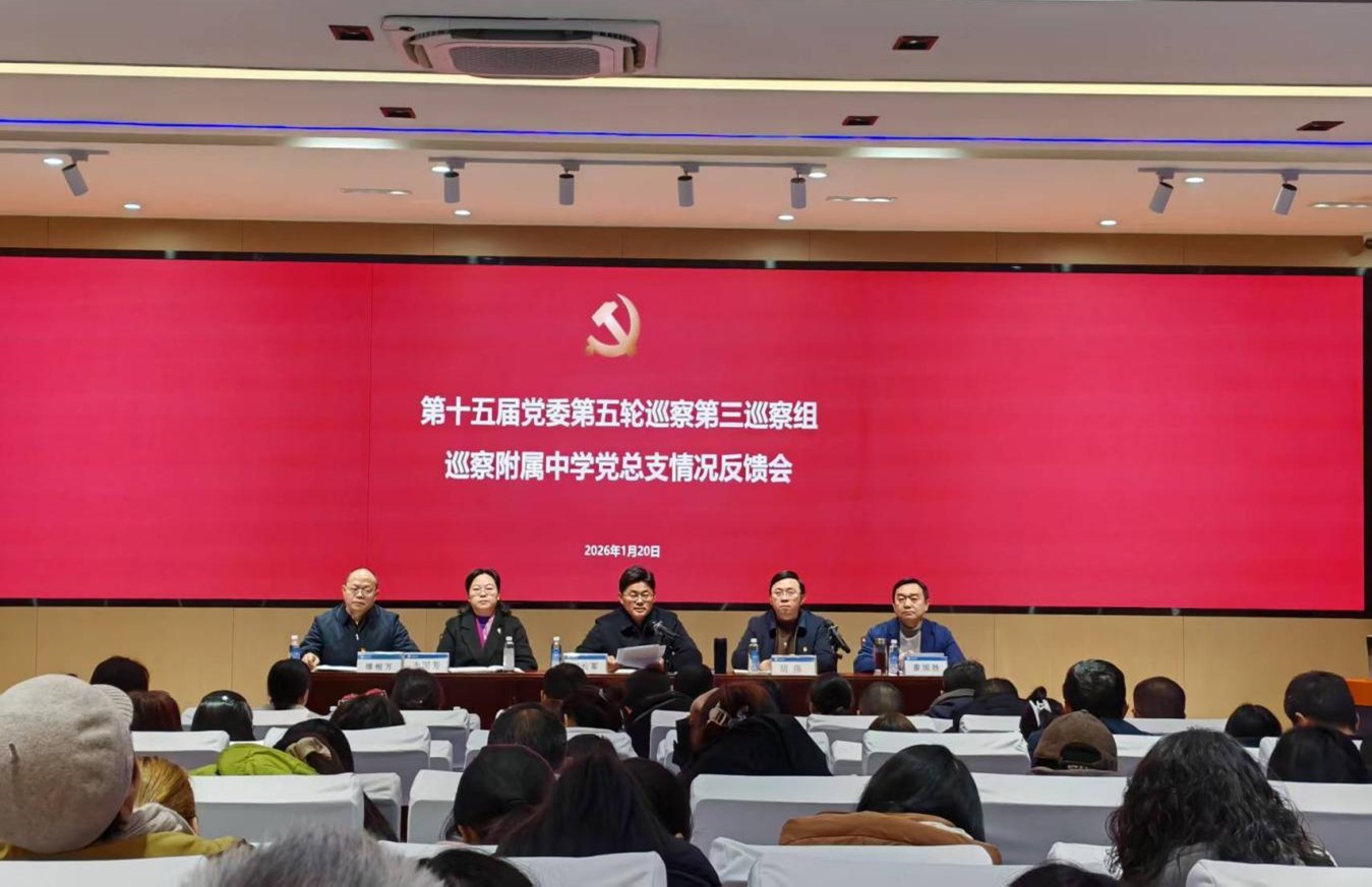 学校党委巡察工作领导小组成员、纪委副书记兼党委巡察办主任李国芳,第十五届党委第五轮巡察第三巡察组有关同志,附属中学领导班子成员出席反馈会议,附属中学党总支委员、干部师生代表等列席会议。